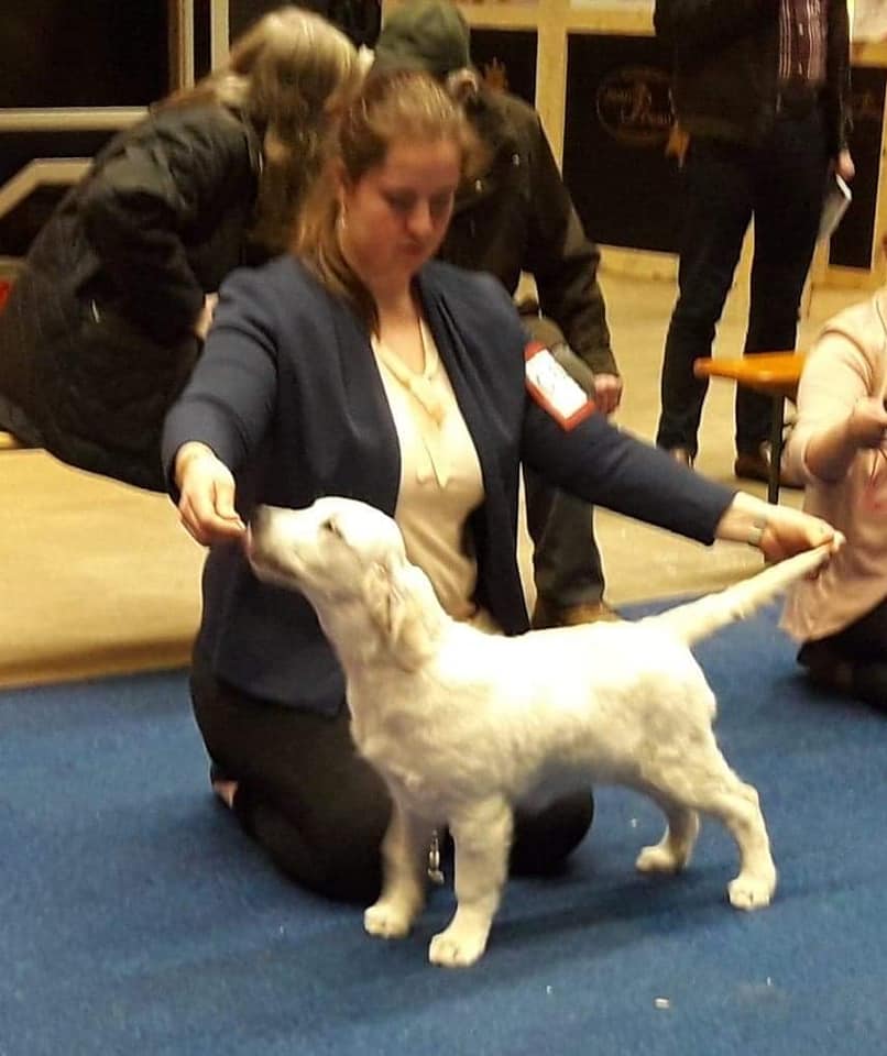 Gruyere of the Morningvalley "Rose" hat unter Richterin Rikke Borring einen vielversprechenden 1. Platz in der Babyklasse erhalten. Rose fand den großen Ring klasse und hat sich ganz toll präsentieren lassen.