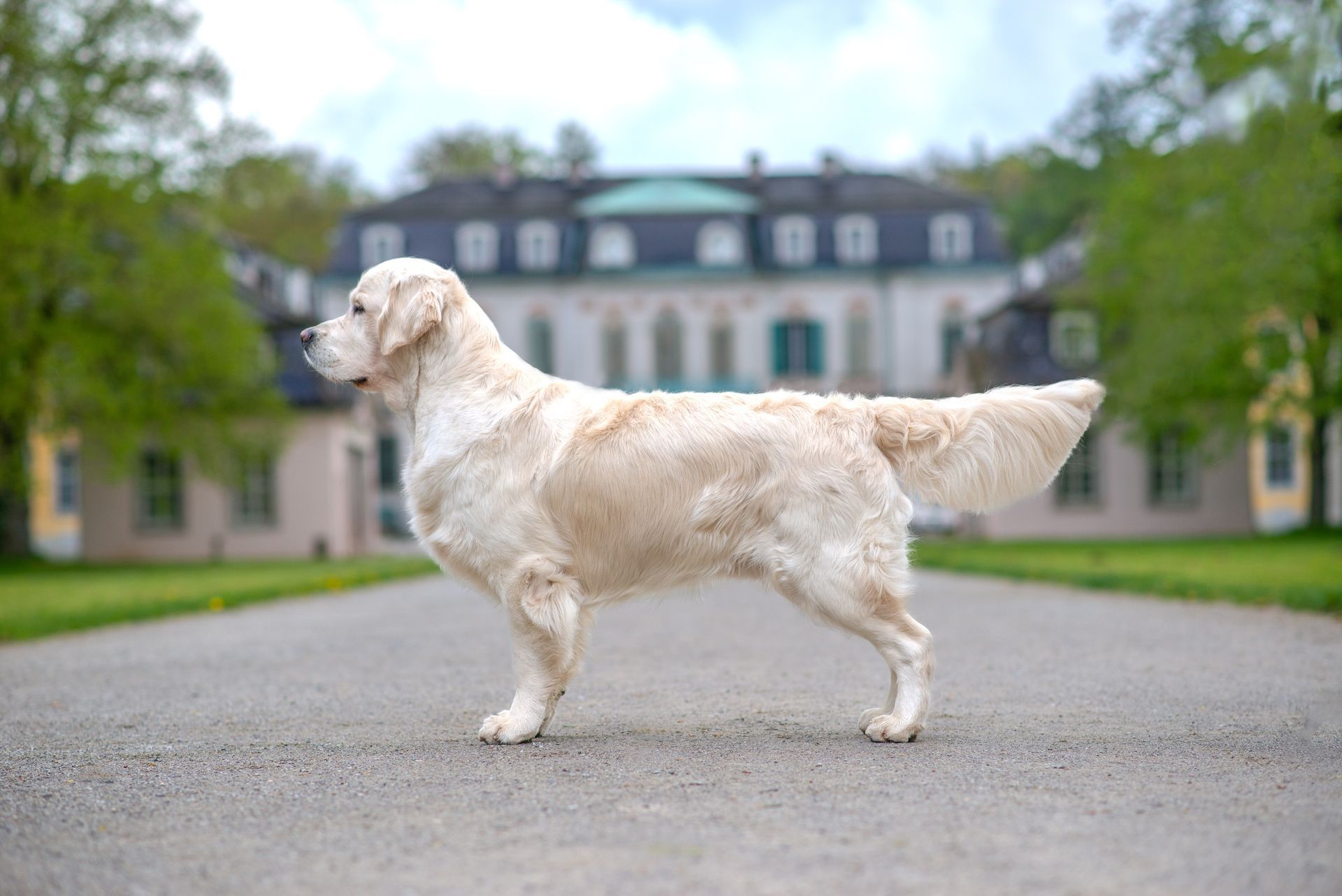 Typ- und substanzvoller cremefarbener Rüde, freundlich und unkompliziert, gute Größe, 1A Haar und Knochenstärke, ausdrucksvoller maskuliner Kopf, lobenswert der gut aufgerippte Brustkorb, die schöne Vorbrust, kraftvolles Bewegungsbild.
